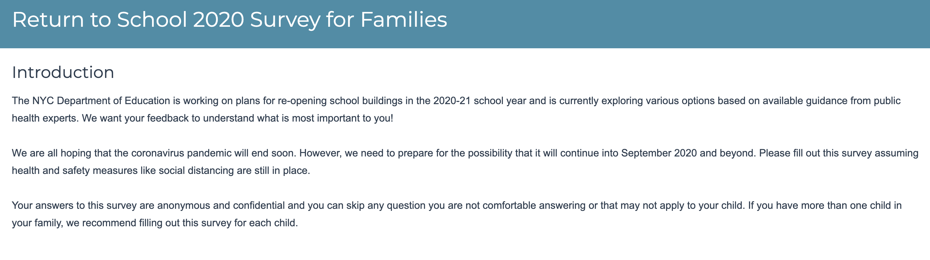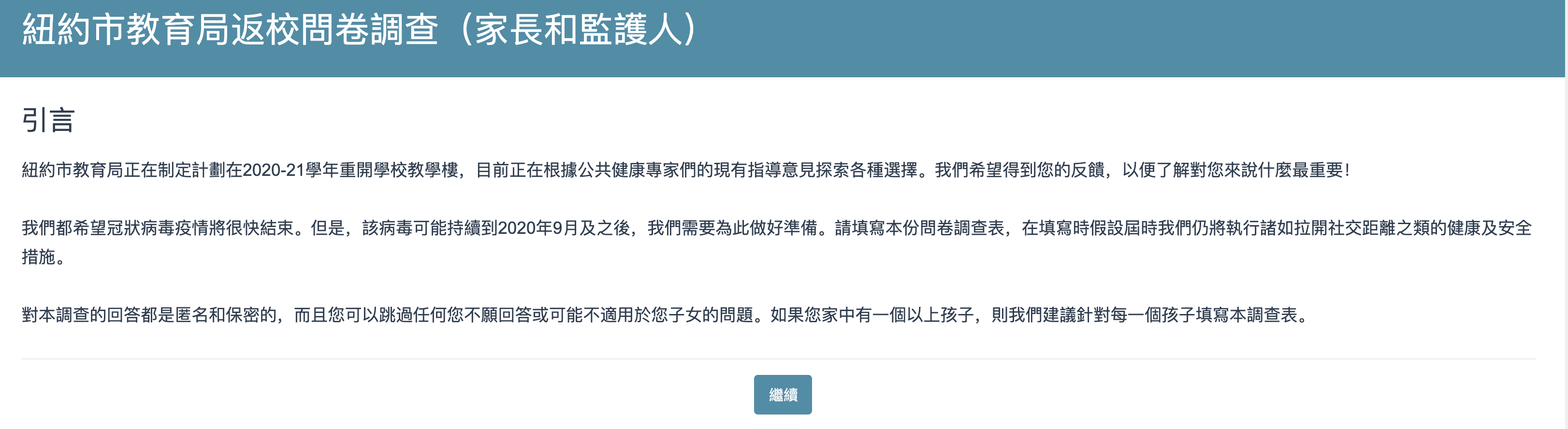 Department of Education Survey- Please complete 紐約市教育局返校問卷調查-請填表格