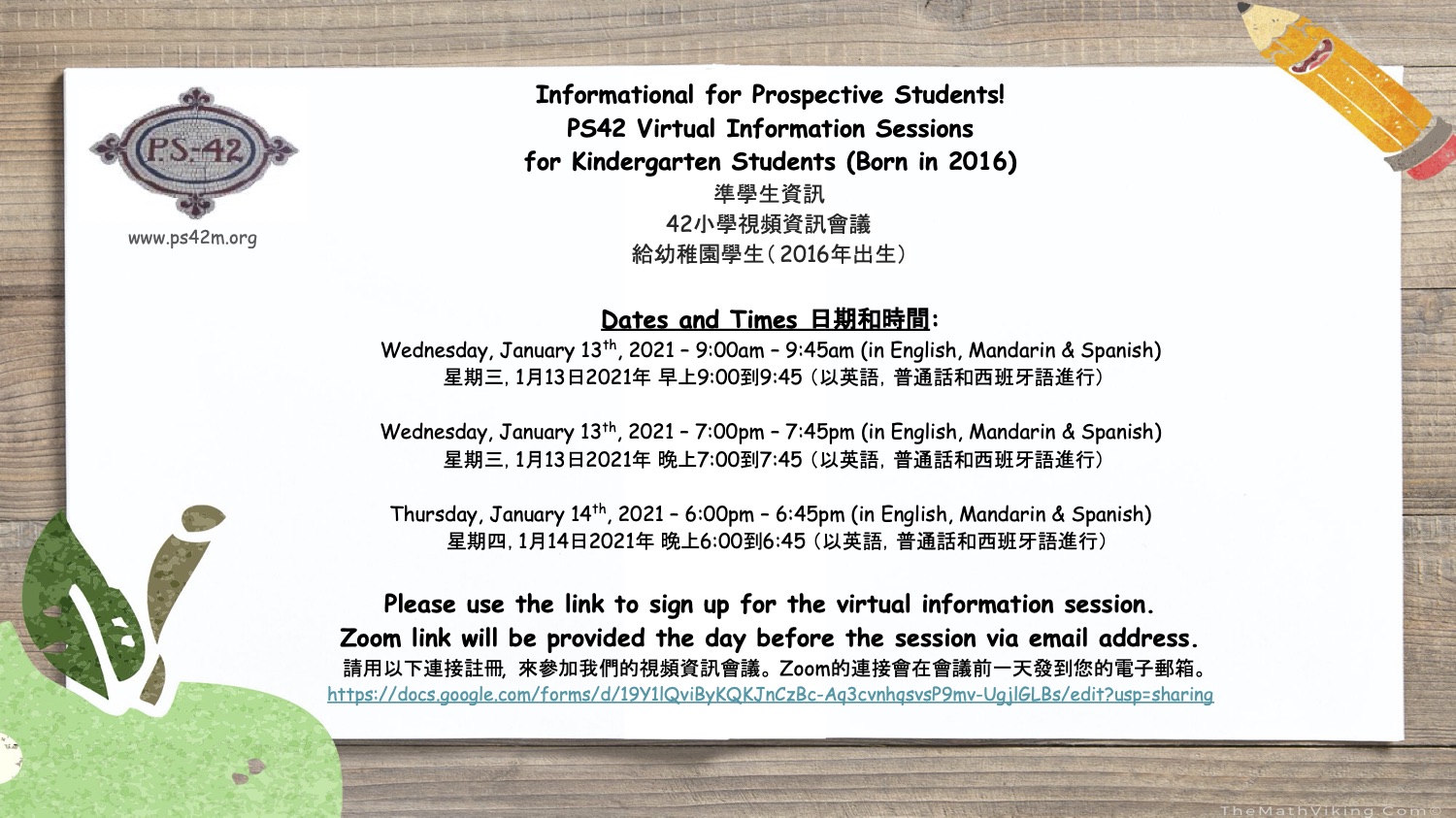 School resumes on Monday, January 4, 2021. P.S. 42 staff will not respond to messages until then.