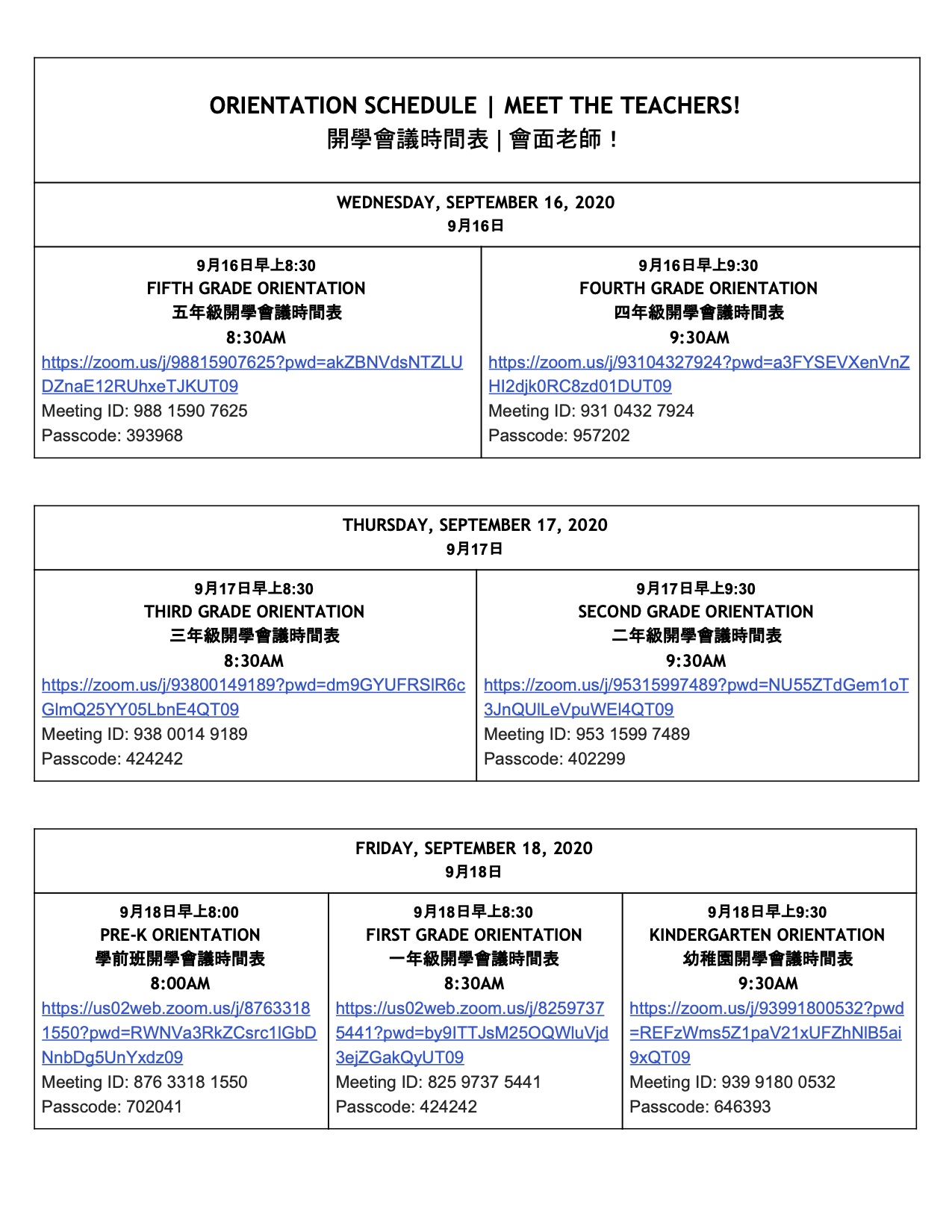 Pre-K students will start Monday, September 21.